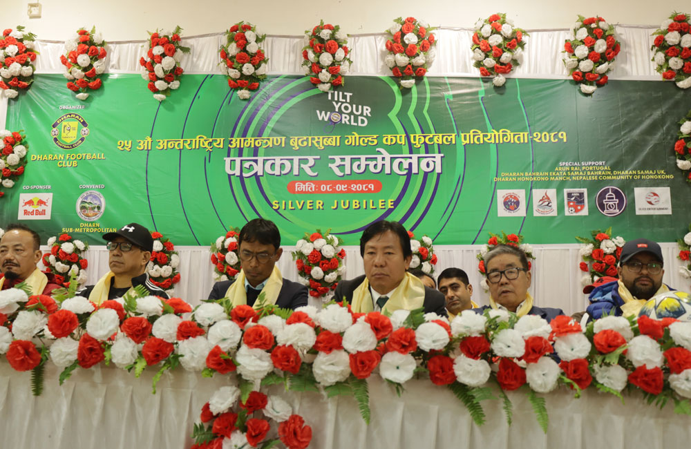 थप पढ्नुहोस्धरान (सुनसरी), ८ पुसः अन्तर्राष्ट्रिय आमन्त्रण बुढासुब्बा गोल्डकप फुटबल प्रतियोगिताको २५औँ संस्करण आगामी माघमा हुनेभएको छ । आज यहाँ आयोजित