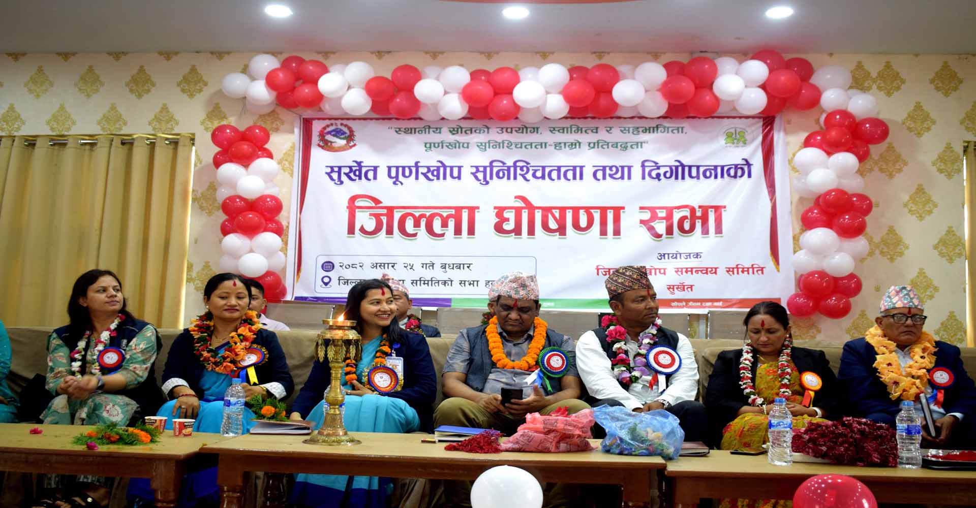 थप पढ्नुहोस्कर्णाली, २५ असार : सुर्खेतलाई पूर्ण खोप सुनिश्चितता तथा दिगोपनाको जिल्ला घोषणा गरिएको छ । जिल्ला समन्वय समिति सुर्खेतद्वारा आज