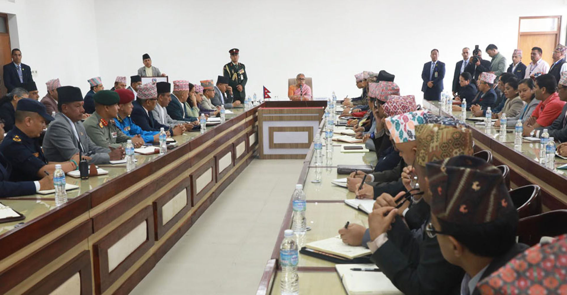 थप पढ्नुहोस्काठमाडौं, भदौ २७ : नवनियुक्त प्रधानमन्त्री सुशीला कार्कीको पद तथा गोपनीयताको शपथ ग्रहण समारोहमा पूर्व प्रधानमन्त्रीहरु, प्रतिनिधिसभाका सभामुख देवराज घिमिरे तथा