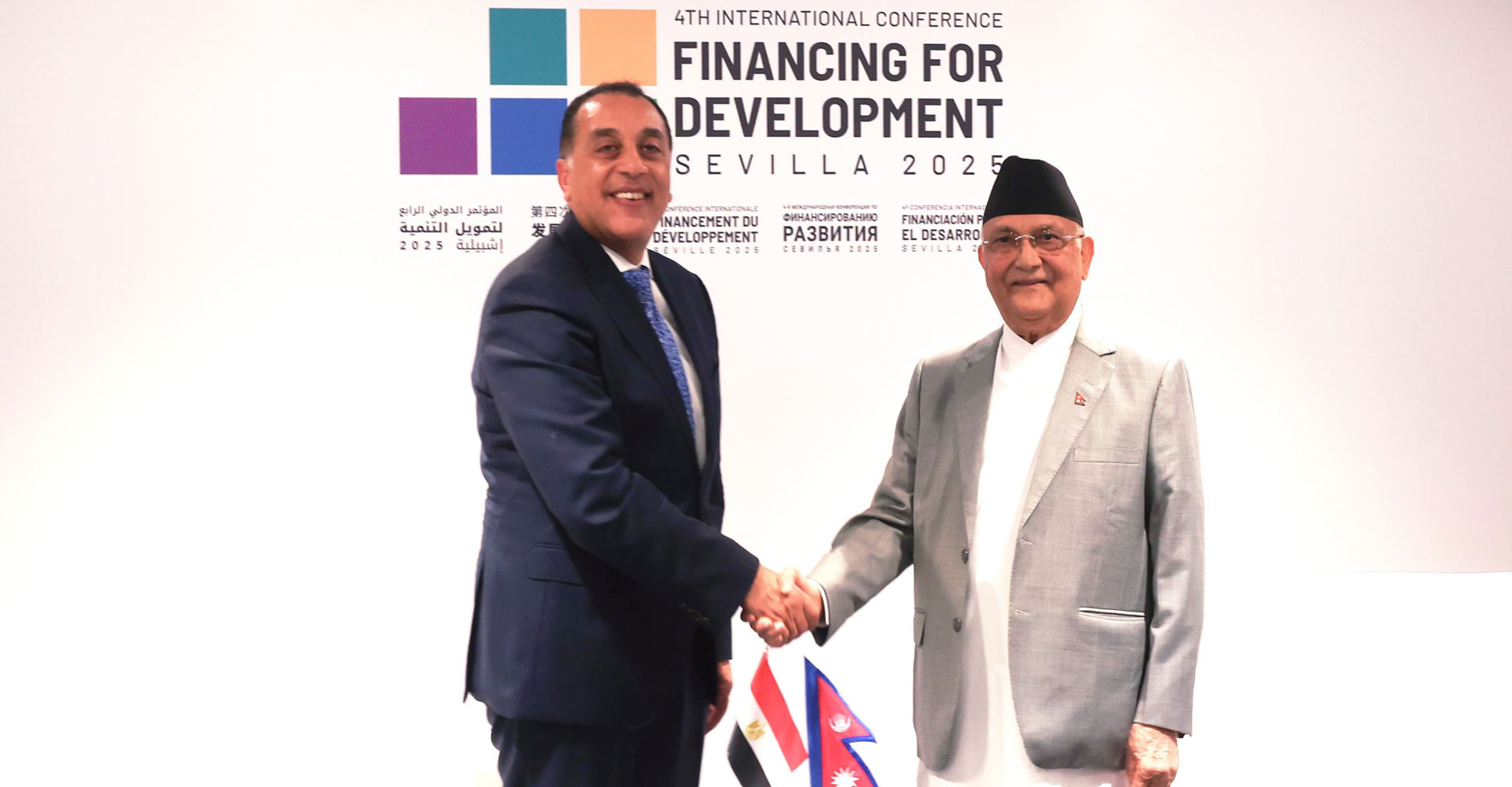 सेभिया (स्पेन), १७ असारः ‘विकासका लागि वित्त’ सम्बन्धी चौथो अन्तरराष्ट्रिय सम्मेलनका क्रममा स्पेनको सेभियामा रहनुभएका प्रधानमन्त्री केपी शर्मा ओली र संयुक्त